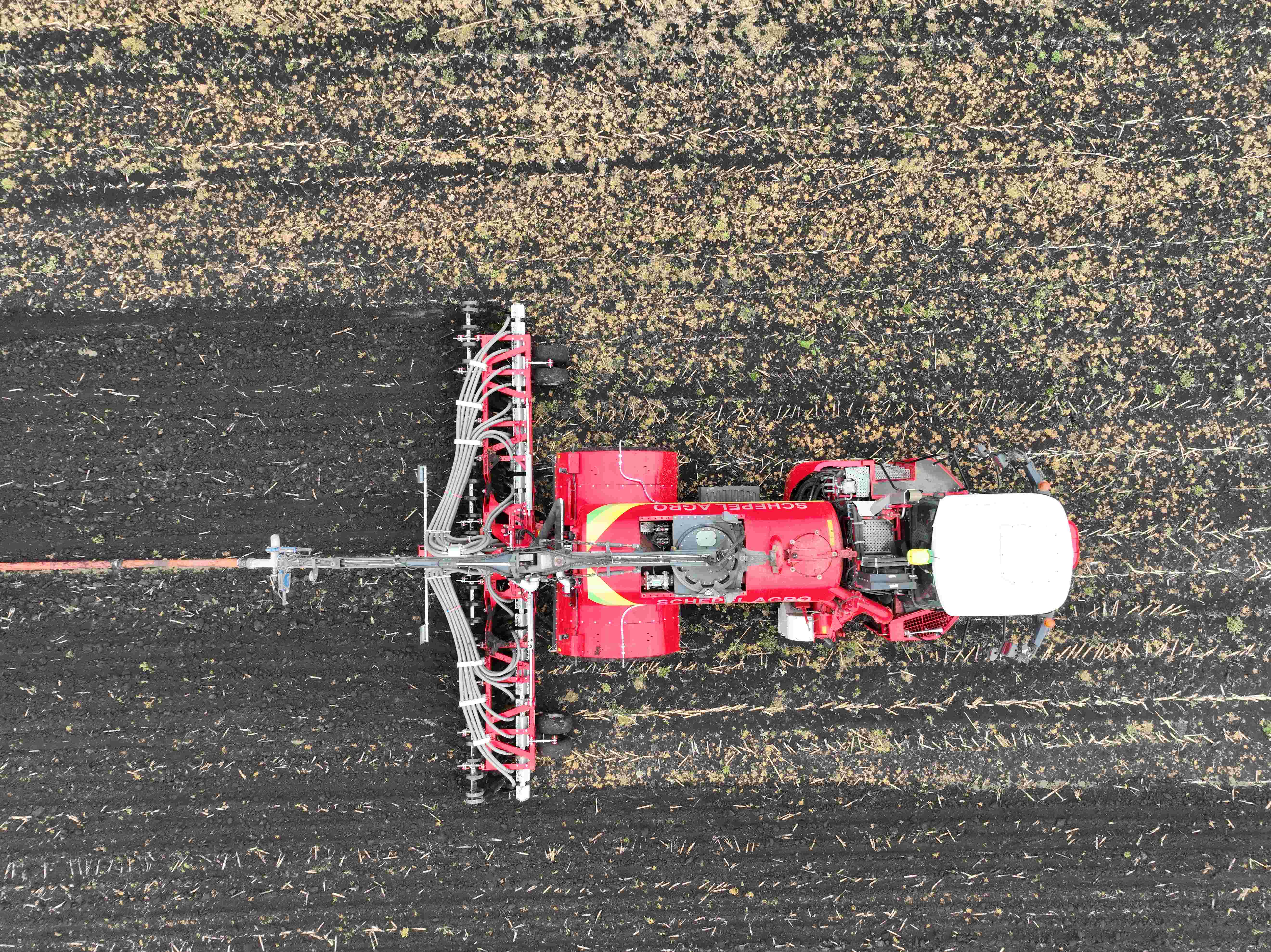 De sleepbuis is direct bevestigd aan de hoofdconstructie van de bemester. De kracht van de sleepslang komt hierdoor kort aan het middenframe, voor een optimale treklijn. De sleepslang constructie heeft hierdoor géén invloed op de bewerking van bijvoorbeeld de schijven of tanden van de bemester.